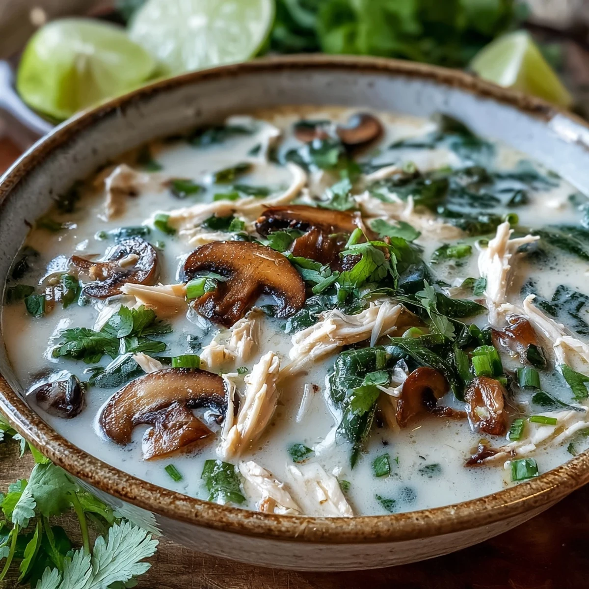 Save The first time I had Tom Kha Gai was at a tiny family-run Thai spot in Seattle where the owner sat with us and explained that the soup is all about balance not heat. I left that dinner obsessed with recreating that perfect harmony of creamy coconut tangy lime and fragrant herbs in my own kitchen. After many attempts and some very patient friends taste-testing I finally found the sweet spot. Now this soup is my go-to when I want something that feels like a warm hug but also exciting enough for guests.