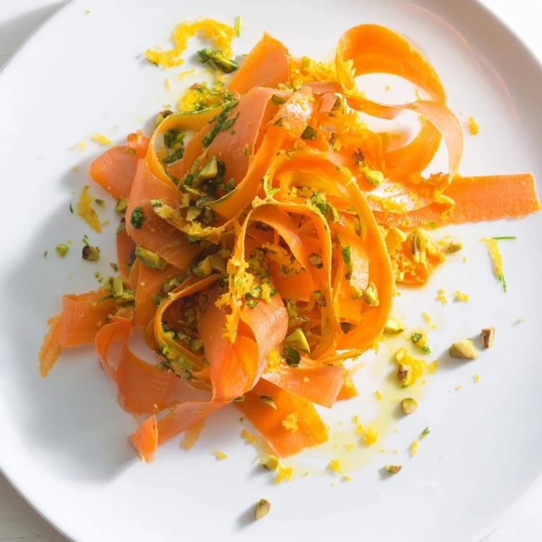 Save I first made this salad on a sweltering July afternoon when my kitchen felt like an oven and cooking anything was out of the question. A friend had dropped off a gorgeous bag of rainbow carrots from the farmers market, and I wanted something that would celebrate their sweetness without turning on the stove. The ribbons looked so elegant curling around each other in the bowl that I've served it at dinner parties ever since.