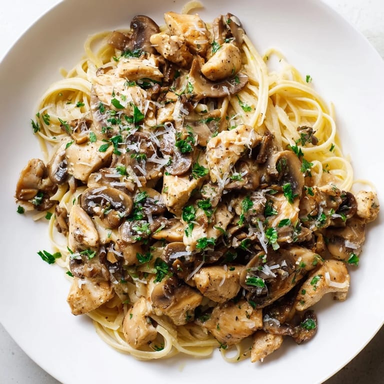 Save There's something about the way mushrooms soften and turn golden in a hot pan that always makes me pause. One Tuesday evening, I was standing at my stove with next to nothing planned for dinner when I remembered how my aunt used to cook chicken this way—nothing fancy, just butter, cream, and time. That night I discovered that the simplest combinations often taste the most like home, and this creamy mushroom chicken pasta became the recipe I keep coming back to whenever I need comfort on a plate.