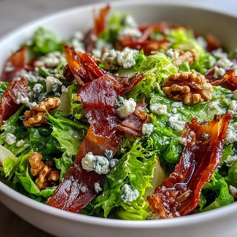 Save This Frisée, Pear, Blue Cheese, and Crispy Prosciutto Salad is a masterclass in balancing bold flavors and delicate textures. The bitter crunch of frisée lettuce provides the perfect backdrop for juicy, sweet pear slices, while creamy blue cheese and salty, oven-crisped prosciutto create a sophisticated profile that is ideal for a vibrant starter or an elegant light lunch.