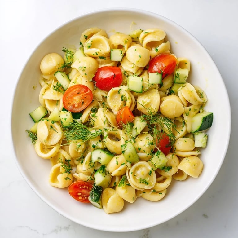 This pasta salad shines alongside simply grilled fish or roasted chicken, but I've also happily eaten it straight from the container as a quick weekday lunch. If you're serving it as a side, a crisp white wine like Sauvignon Blanc echoes the lemon notes beautifully, though iced mint tea works wonderfully for a nonalcoholic option that feels intentional and refreshing.