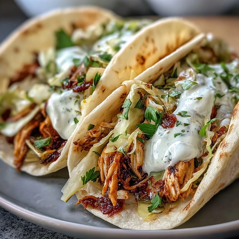 Save The way chicken sizzles in the oven never fails to wake up my appetite, but the first time I roasted chicken specifically for tacos, the whole apartment smelled like smoky spices and citrus even before I finished prepping. There was a spring breeze humming through the screen door and I remember thinking: tacos for dinner felt like a tiny vacation, right at my table. The cabbage slaw gave everything such a satisfying crunch that it almost outshone the chicken. There’s something fun about how the bright lemony crema ties it all together—creamy, tangy, and confidently fresh. This recipe became my go-to when I needed something colorful and effortless, even on a weekday.