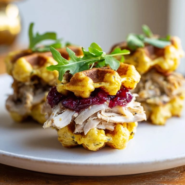 Save I was staring at a container of leftover stuffing one November afternoon, already tired of reheating it the same way, when I spotted my waffle iron shoved in the back of the cabinet. The idea felt ridiculous at first, but I pressed a scoop of stuffing into the hot iron anyway. When I lifted the lid and saw those golden, crispy edges, I knew I'd stumbled onto something worth keeping. That same night, I built my first slider with shredded chicken and a quick cranberry mayo, and it disappeared faster than any traditional leftover plate ever had.