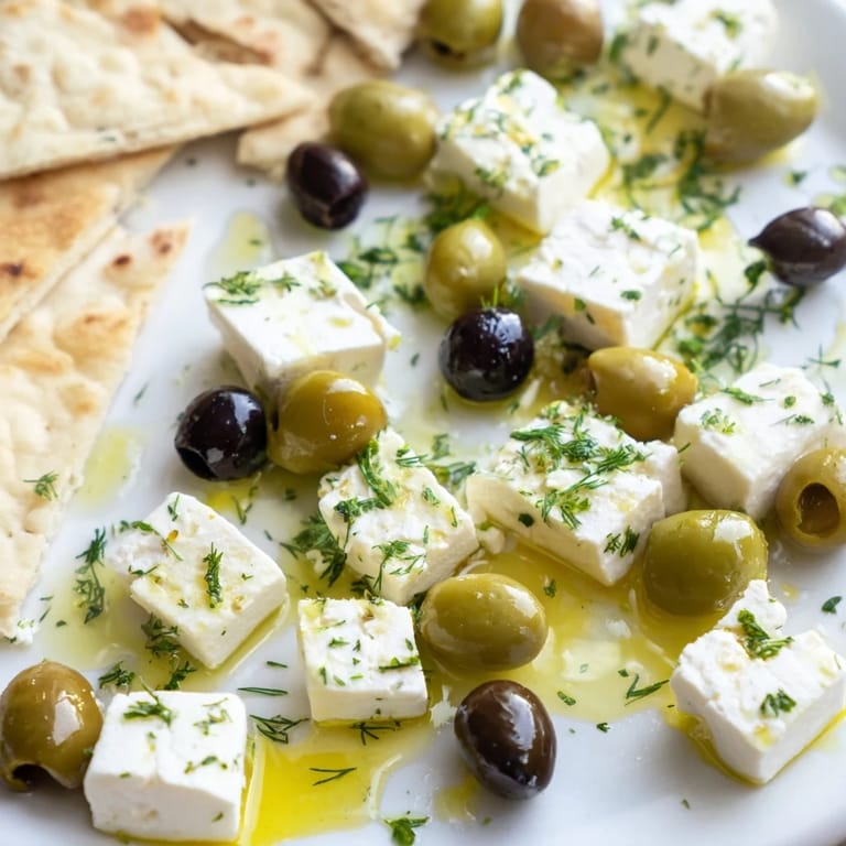 - Warm pita bread, 2–3 pieces, cut into wedges: Warmth matters here; cold pita is just a vehicle, but warm pita becomes part of the experience, holding cheese and olive together.